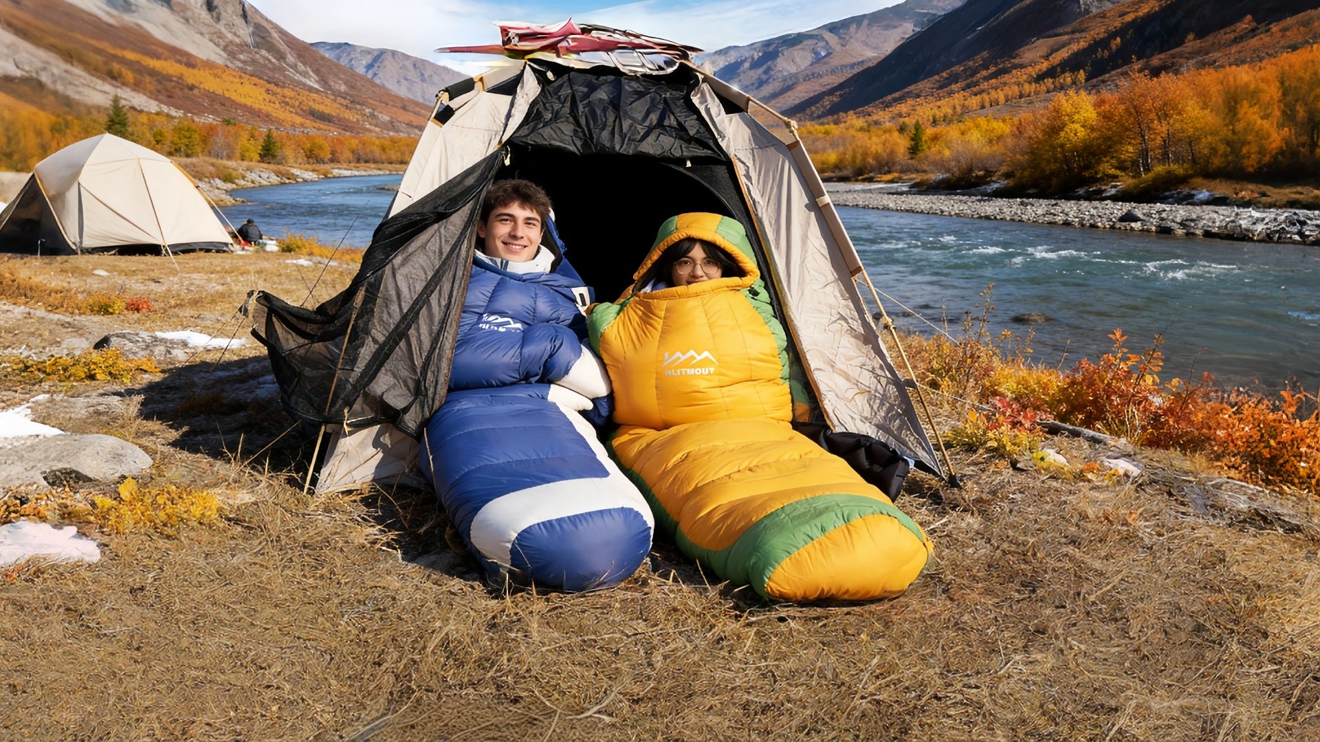 Hlitmout Ultralight Mummy Down Sleeping Bag(Blue and grey)