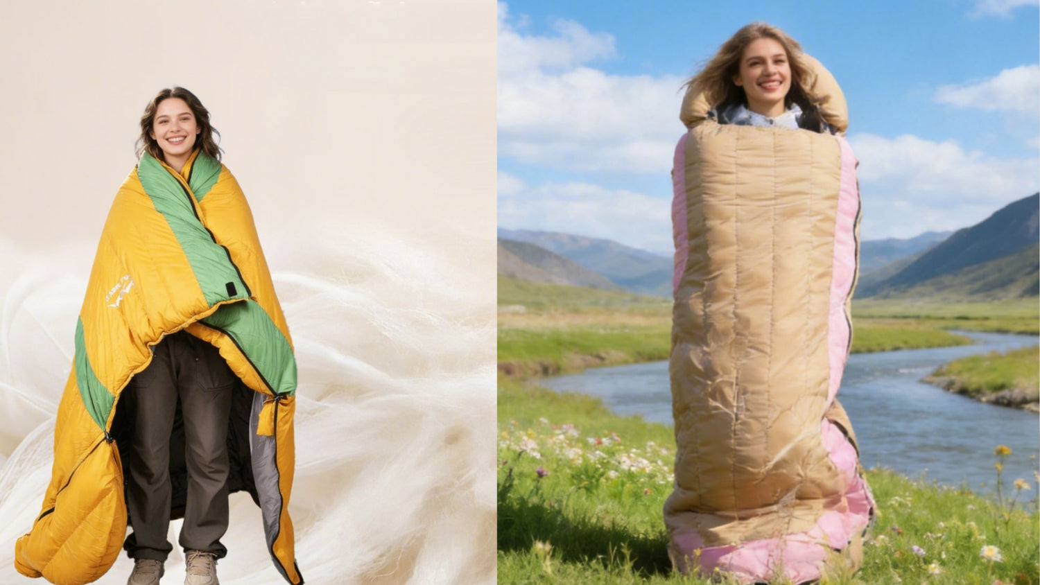 HLITMOUT Ultralight Mummy Down Sleeping Bag(Yellow and Pink)